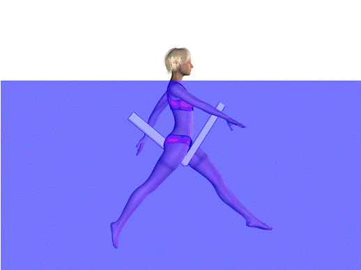 3. Cross country ski – keeping the knees straight, move your legs back and forth.